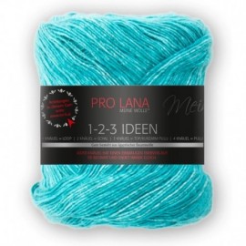 1-2-3 Ideen de Pro Lana, hilo en 100% algodón egipcio con un delicioso degradado. Cada ovillo empieza y acaba en el mismo tono. En ovillos de 100g/315m aprox., para aguja recomendada de 3 a 4mm.