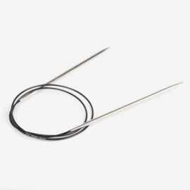 Relucientes agujas circulares con puntas puntiagudas, transiciones perfectas y cables flexibles, muy confortables para tejer.
