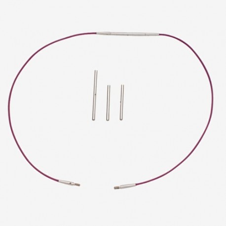 Cada conector permite unir dos cables de agujas circulares intercambiables entre sí, permitiendo obtener agujas circulares de mayor longitud que los cables originales.