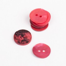 Botón redondo de nácar con dos agujeros, en color rojo. Diámetro de 15mm.
