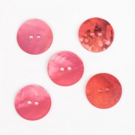 Botón redondo de nácar con dos agujeros, en color rojo. Diámetro de 20mm.
