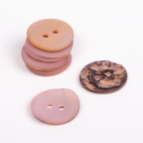 Botón redondo de nácar con dos agujeros, en color natural. Diámetro de 15mm.