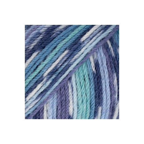 Lana de 4 hebras, lavable en lavadora. En colores lisos o estampados con efectos muy bonitos. Para cualquier uso, ideal también para calcetines espectaculares.