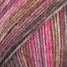 Lana de 4 hebras, lavable en lavadora. En colores lisos o estampados con efectos muy bonitos. Para cualquier uso, ideal también para calcetines espectaculares.
