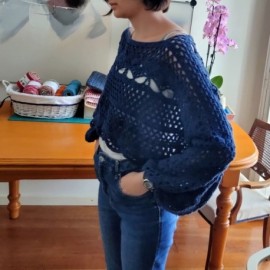 Kit para tejer a crochet (ganchillo) el top Dash, diseño de Senshoku, un jersey con mangas anchas con un resultado espectacular, en su versión el algodón o bambú. El patrón sirve para las tallas S, M y L/XL. Está tejido en crochet (ganchillo) con lana de grosor DK/Worsted, en el diseño original se han realizado dos versiones, una com Bambú Casasol, usando el color blanco nata y otra con Eco Eco de Casasol, usando el color Eco denim, puedes ver la descripción y colores disponibles de estos hilos hilo en los links siguiente: