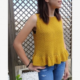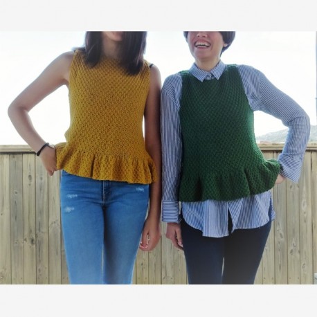 Kit para tejer el Nadia Top, diseño de @tatapatata, top sin mangas con péplum abajo, muy favorecedor. Se puede usar tanto en verano como top como en invierno de chaleco.