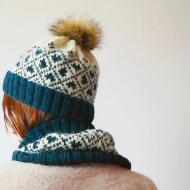 El gorro puede llevar un pompón, el de las fotos incluye un pompón de pelo, que puede adquirirse por separado en nuestra sección de material auxiliar. En el patrón se incluyen también instrucciones para elaborar un pompón con lana.
