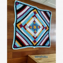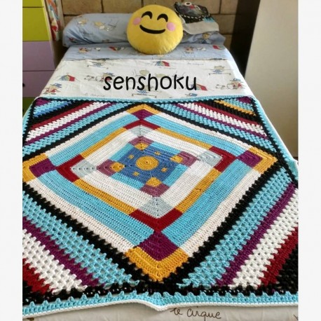 Patrón descargable para tejer la manta Pop Blanket, diseño de Senshoku, una manta de tamaño aproximado de 90x90cm con un bonito colorido