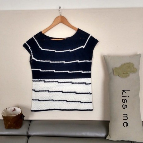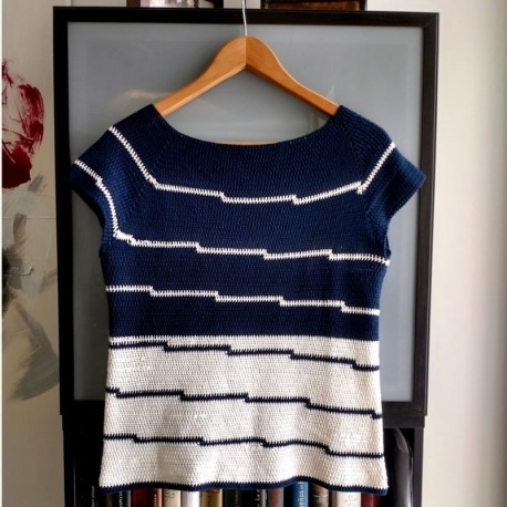 Patrón descargable en formato PDF para tejer en crochet (ganchillo) la blusa o camiseta Scala, diseño de Senshoku