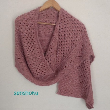 Patrón descargable en formato PDF para tejer en tricot (dos agujas) el Chal Eleganza, diseño de Senshoku