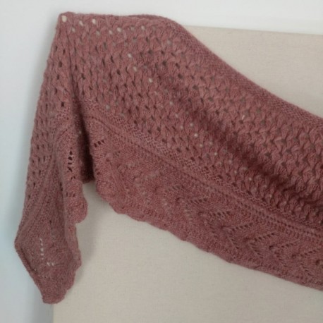 Patrón Chal Elaganza, elaborado con lana de grosor 8ply/DK/worsted
