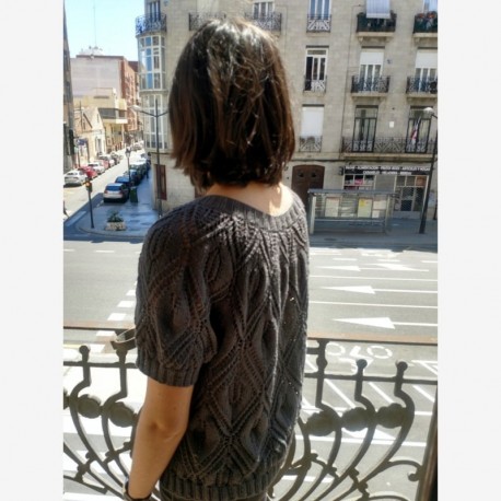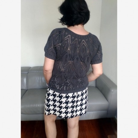 Patrón descargable en formato PDF para tejer el My Leavess Tee, una camiseta de verano con calados, diseño de Senshoku.