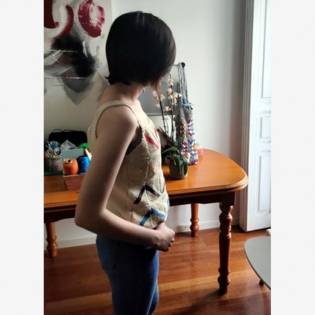 Patrón descargable en formato PDF para tejer el Top Units, diseño de Senshoku.