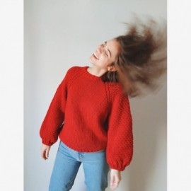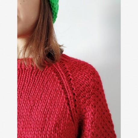 Patrón descargable en formato PDF para tejer el jersey Mousse, diseño de @mi.tata.patata, jersey tejido de una sola pieza de arriba a abajo con agujas circulares. Un jersey suave y esponjoso, que te envuelve y te rodea de calidez en los fríos días de invierno.