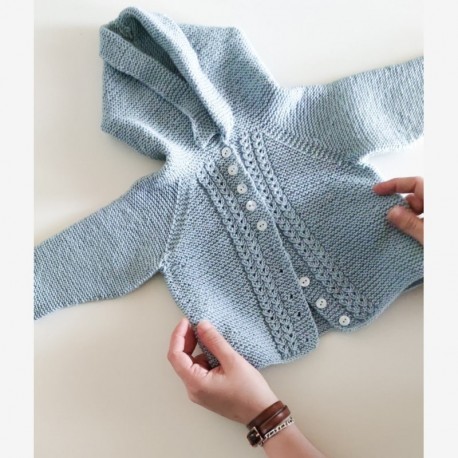 En el patrón se indican las instrucciones para tejer la chaqueta en 5 tallas distintas, de 3 a 24 meses. Para la elaboración se utilizan agujas circulares de 3mm y 80 cm de largo (es posible usar agujas rectas), además para tejer las mangas necesitarás agujas circulares cortas, agujas de doble punta o utilizar la técnica del “magic loop”, según prefieras.