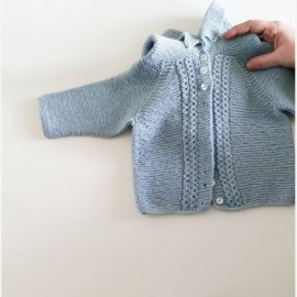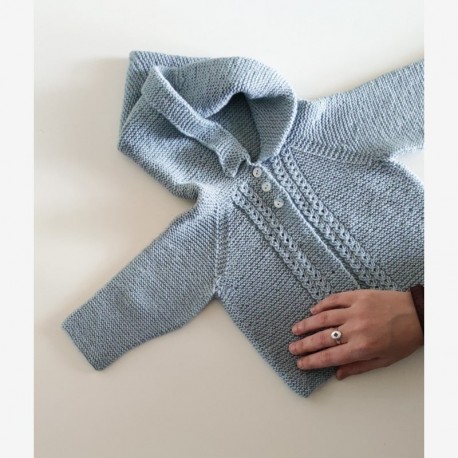 Patrón descargable en formato PDF para tejer en tricot (dos agujas) la chaqueta Lolito, preciosa chaqueta para bebé diseño de @mibuhardillacraft.