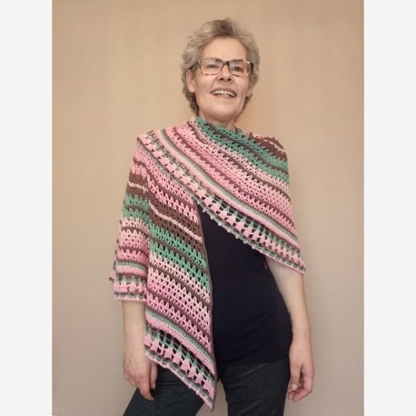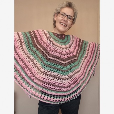 Patrón descargable en formato PDF para tejer en crochet (ganchillo) el chal Macarons, diseño de @malditoganchillo.
