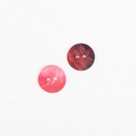Round mother-of-pearl button with two holes, in red. Diameter: 15mm.