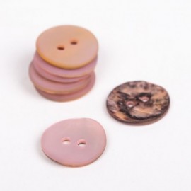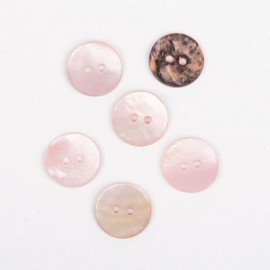 Round mother-of-pearl button with two holes, in natural colour. Diameter 15mm.