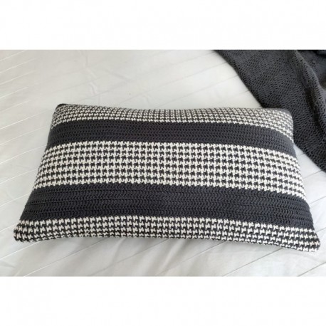 El kit está compuesto por los ovillos (17 ovillos en total, 8 ovillos de Love You 7 en color 04 - gris oscuro y 9 ovillos de Safran en color 18 - blanco hueso) y el patrón descargable en formato PDF (no incluye el relleno para los cojines). Una vez adquirido el kit, podrás descargar el patrón desde tu área de usuario en nuestra web (también recibirás un mail con el link para la descarga) y te enviaremos los productos físicos con packaging.