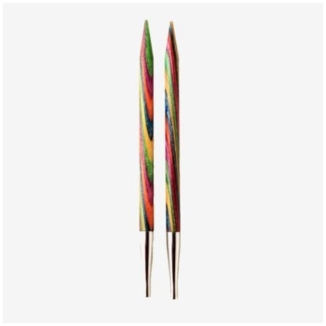 They are used together with KNIT PRO or DROPS cables (they are compatible) to obtain the desired needle length. Made of decorated wood.