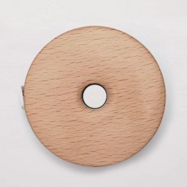 Retractable measuring tape with beech wood exterior and round shape, measuring length 1.5m. The measuring tape is made of fiberglass.