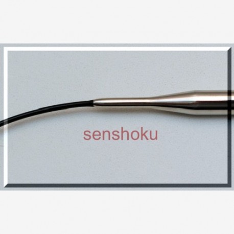 Shiny circular needles with pointed tips, perfect transitions and flexible cables, very comfortable to knit with.