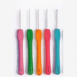Set of 5 ergonomic crochet hooks, with polished aluminium tip and soft handle, very comfortable for knitting. Sizes 2-2.5-3-3.5 and 4 mm.