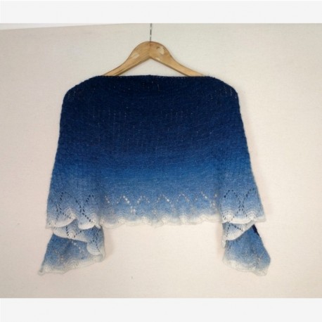 Patrón del Chal Brume, precioso chal, cuyo diseño original está realizado en Poema, lana 100% merino con efecto degradado a lo largo de todo el ovillo.