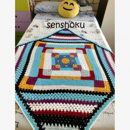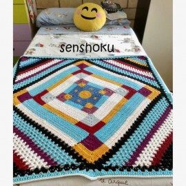 Patrón descargable para tejer la manta Pop Blanket, diseño de Senshoku, una manta de tamaño aproximado de 90x90cm con un bonito colorido