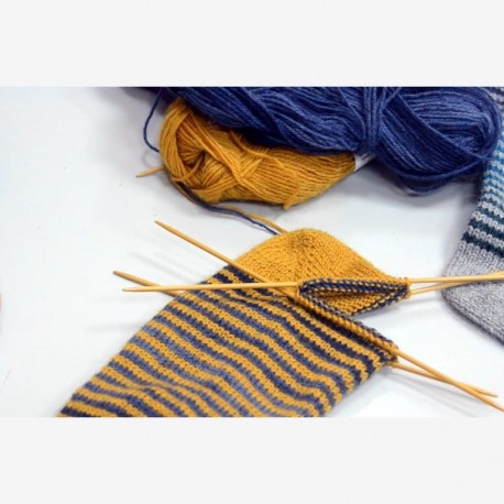 Una vez adquirido el tutorial (gratis), podrás descargarlo desde tu área de usuario en nuestra web (también recibirás un mail con el link para la descarga). Para un par de calcetines necesitarás dos ovillos de 50g (como Delight, Fabel o Nord) o un ovillo de 100g (como Signature 4 ply), se tejen con agujas de 2.5mm, puedes utilizar agujas de doble punta, o utilizar agujas de doble punta al inicio y luego agujas circulares cortas. También son útiles marcadores de puntos. El tutorial incluye una tabla con las medidas y puntos para las distintas tallas.