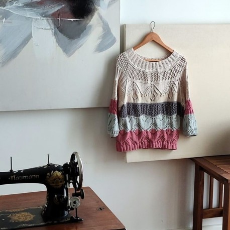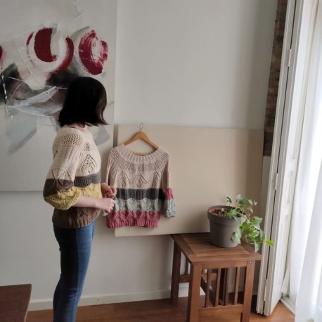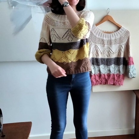 Patrón descargable en formato PDF para tejer el jersey de verano Nature Hills Sweater, diseño de Senshoku.