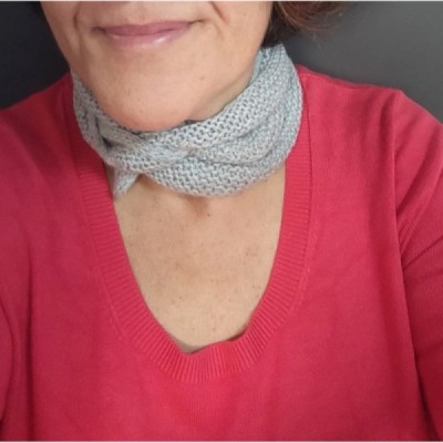 Patrón descargable de forma gratuita en formato PDF para tejer a tricot (2 agujas) el pañuelo Onlyneck, diseño de Senshoku.