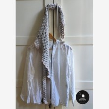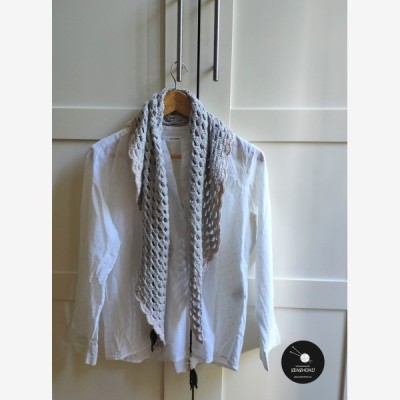 Para el chal de las fotos se han utilizado 4 ovillos de Genesis, 3 del color 2007 - gris claro y 1 del color 3000 - gris plata.