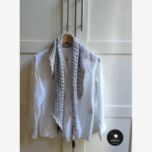 Es un chal de unos 150 x 35 cm, predomina el largo sobre el ancho para que puedas también llevarlo al cuello tipo pañuelo. Fácil y rápido de tejer, incluso para principiantes, o para tejedoras experimentadas que quieren pasar un buen rato sin complicaciones y como resultado conseguir un chal muy resultón.