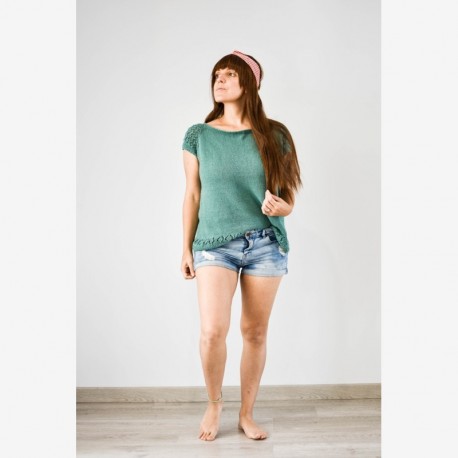 Patrón para tejer el LetterMore Top, diseño de @graceisnotmyforte, un bonito top de verano con detalles de calados. El diseño original de las fotos está realizado en algodón DROPS Love You 9 (algodón 100%) en color 119 - verde ágata, puedes utilizar si lo deseas otro hilo de grosor fingering. Puedes ver las características y colores disponibles de Love You 9 en el link siguiente.
