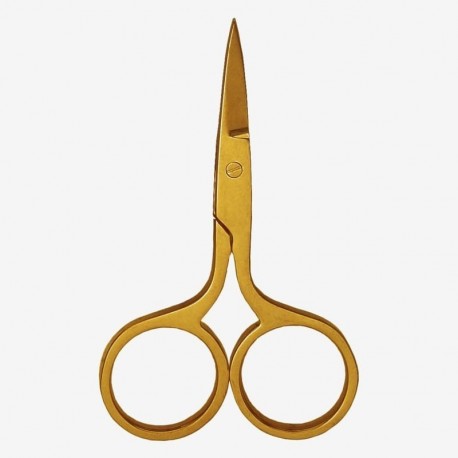 Tesoura pequena (7cm de comprimento) corta-fio para levar para qualquer lugar, feita em aço e na cor dourada, da marca alemã Addi.