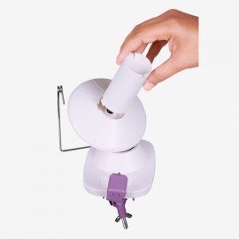 Acessório prático para enrolar as novelo manualmente de forma perfeita. Fixa-se firmemente em qualquer superfície (por exemplo uma mesa) até 6cm de espessura, para poder trabalhar confortavelmente, passe o fio pelo ilhó da agulha de metal e segure a ponta do fio na ranhura central do porta- novelo . Ao girar a manivela a novelo começará a se formar.