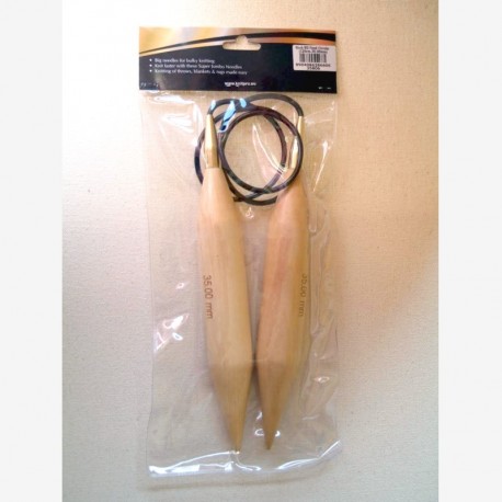 KNIT PRO JUMBO BIRCH Agulhas circulares jumbo 35mm/120cm. Em madeira de bétula.