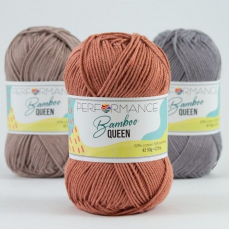 Bamboo Queen de Performance, mistura de bambu e algodão, para agulha de 2,5-3,5 mm. Vem em novelo 50g/125m. Um fio primavera-verão resistente, muito macio e respirável, em lindos tons pastéis.