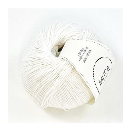 Fine Organic Cotton de Musa Yarn, un hilo en grosor fingering en 100% algodón orgánico. En ovillos de 50g/180m aprox.