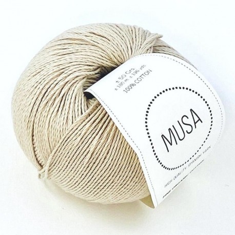 Fine Organic Cotton de Musa Yarn, un hilo en grosor fingering en 100% algodón orgánico. En ovillos de 50g/180m aprox.