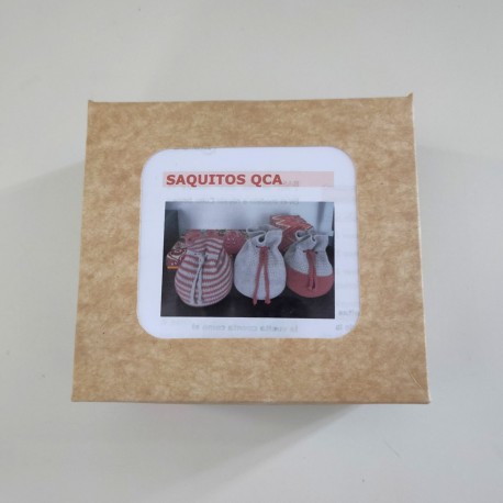 Mini kit para tricotar um Saquinho QCA, desenho Senshoku. Com o material incluso no kit você pode escolher qual tricotar (dos três das fotos).