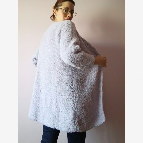 Kit para tejer la chaqueta Candy, diseño de @mi.tata.patata, chaqueta tejida de una sola pieza con hilo doble de algodón y alpaca bouclé, para que te sientas envuelta en una nube mullida. Es larga y no lleva botones.