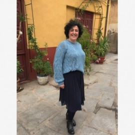 O kit é composto pelas 13 novelo do DROPS Paris na cor que desejar e pelo modelo que pode descarregar em formato PDF. Lembre-se de selecionar a cor desejada do fio, a cor padrão é 101 - azul claro, com a qual é feito o suéter das fotos.