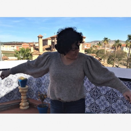 Kit para tricotar o suéter Sweater Flow, design de @olgamnp, um suéter fácil de fazer e com um resultado espetacular, com destaque para sua manga bufante. Tricota-se (duas agulhas) com o fio DROPS Brushes Alpaca Silk. O desenho original é feito na cor 02 - cinzento claro, pode ver a descrição e cores disponíveis do DROPS Brushed Alpaca Silk no seguinte link:
