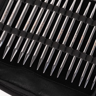 As agulhas circulares são feitas de latão e níquel, os cabos de nylon e os terminais de plástico. As pontas têm 12,5 cm de comprimento e o conjunto inclui os tamanhos de ponta mais comuns, de 3,50 a 8,00 mm. Isso garante que você tenha a agulha circular do tamanho certo para qualquer projeto de tricô. Você pode combinar livremente cada tamanho de agulha com todos os cabos e usar o conjunto como um conjunto clássico de agulhas circulares. Além disso, você pode usar o cabo como uma agulha de transição, simplesmente prendendo a agulha de tricô desejada em uma extremidade e um terminal na outra.