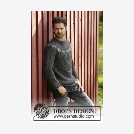Camisola tricotada para homem DROPS com encaixe redondo e malha jacquard em Alaska. Tamanho: S - XXXL.