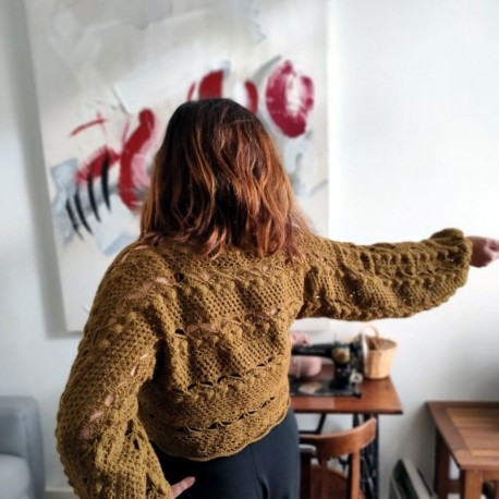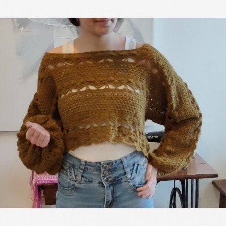 Padrão para download com instruções para fazer crochê do top Dash, design Senshoku, um suéter com mangas largas com resultados espetaculares. O padrão funciona para os tamanhos M e L, é o mesmo, com um resultado mais justo para o tamanho L. É feito em crochê com espessura de dedilhado lana . O desenho original é feito com lana Shetland Casasol na cor 04 – topázio marrom, você pode ver a descrição e cores disponíveis deste fio no seguinte link:
