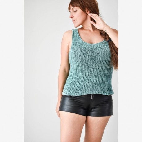 Modelo para tricotar a Regata Rathlin, desenho de @graceisnotmyforte, um lindo top de verão sem mangas. O desenho original das fotos é feito em algodão DROPS Love You 9 (100% algodão) na cor 118 - verde gelado, pode usar outro fio de espessura de dedilhação se desejar. Você pode ver as características e cores disponíveis do Love You 9 no link a seguir.